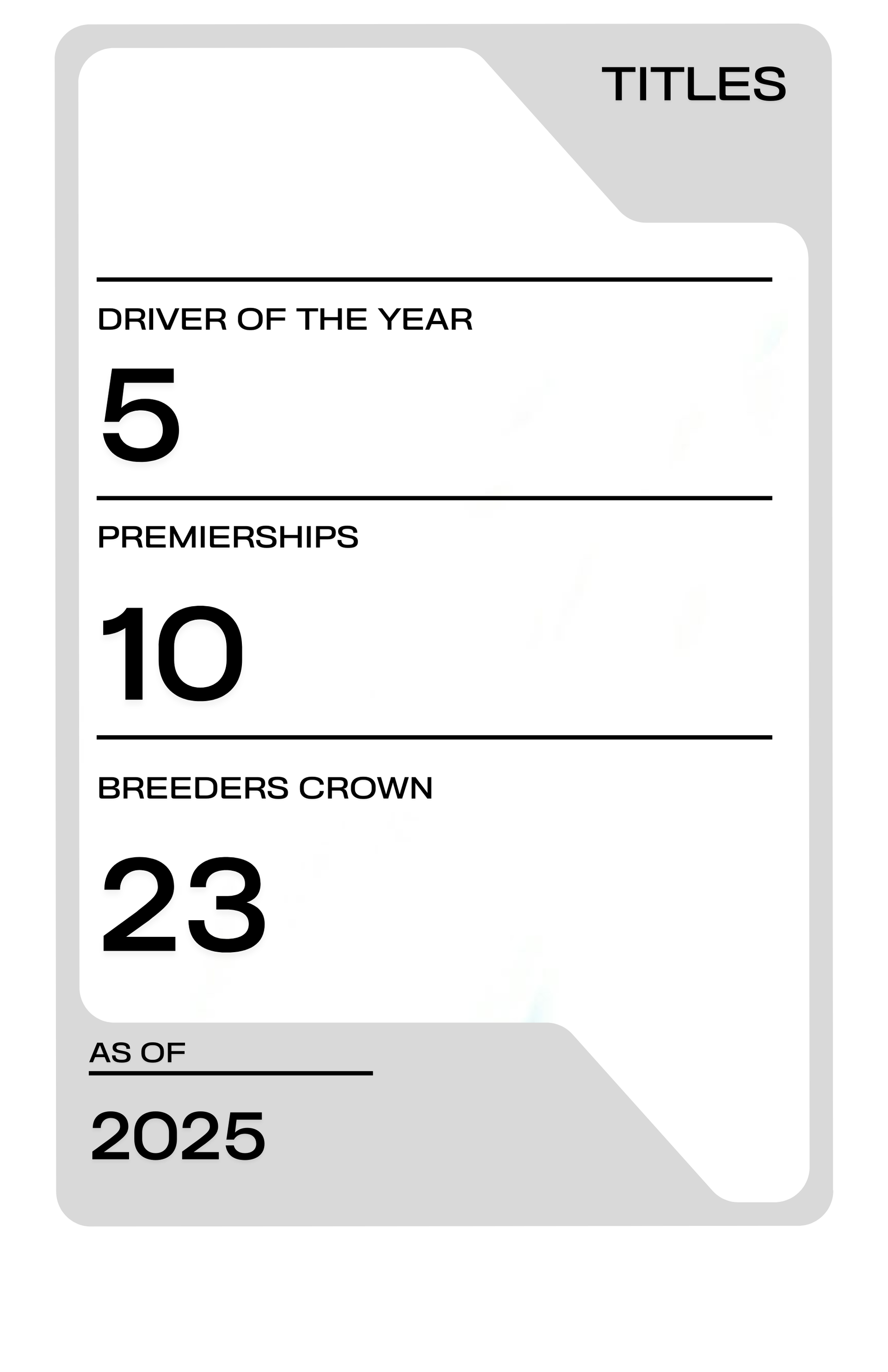 In 2018–2019, Dexter made the leap to North American racing, initially staying with trainer Chris Ryder. He achieved immediate success, winning over 450 races and more than $11 million in purses in 2019 alone (including driving stars like Bettor’s Wish). He was named U.S. Harness Writers’ Association (Dan Patch) Driver of the Year in 2019, 2020, 2021, 2022, and 2024—five times in six years.